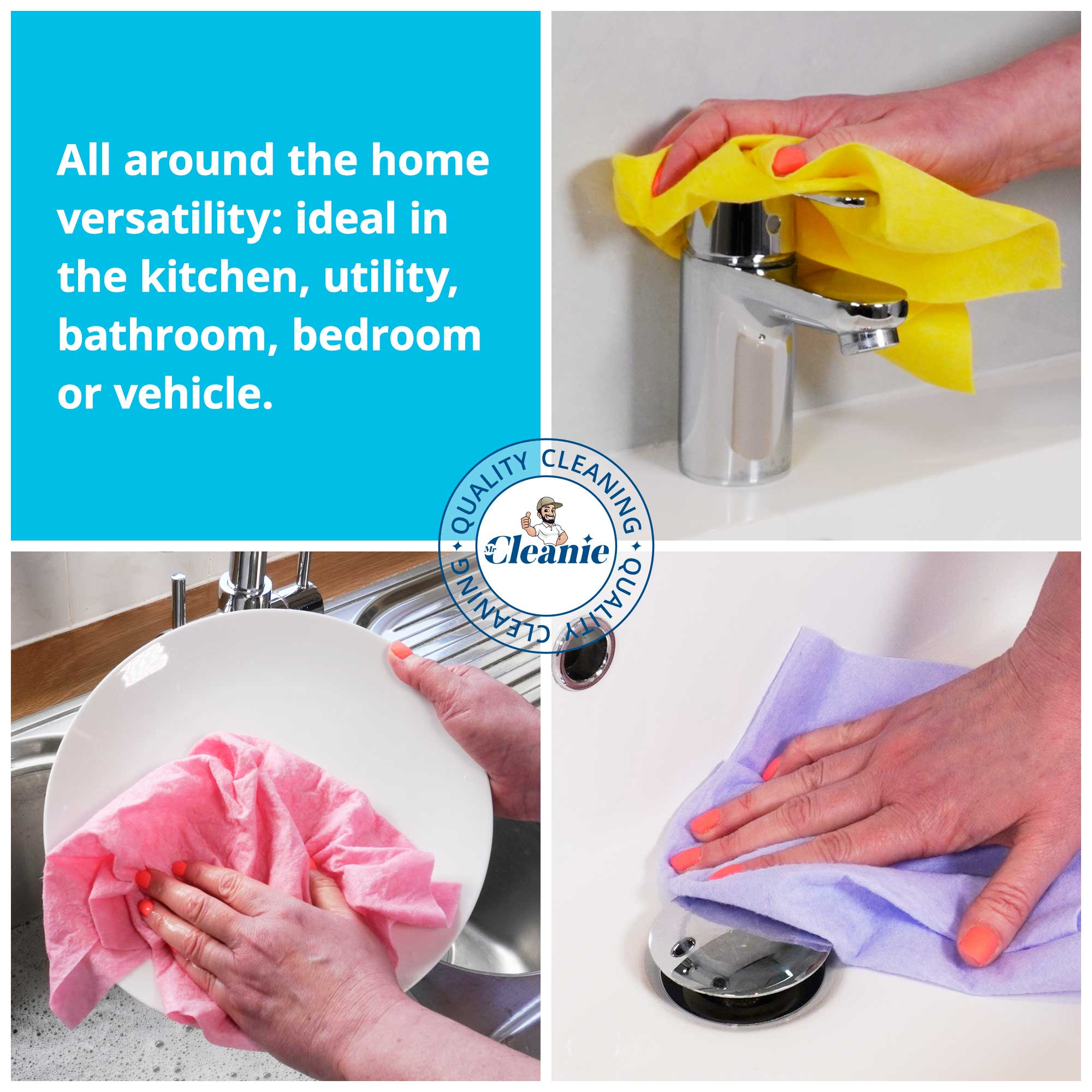 To keep your Mr Cleanie cloth free from unpleasant odours and bacteria growth ALWAYS rinse thoroughly after use and leave to dry unfolded.